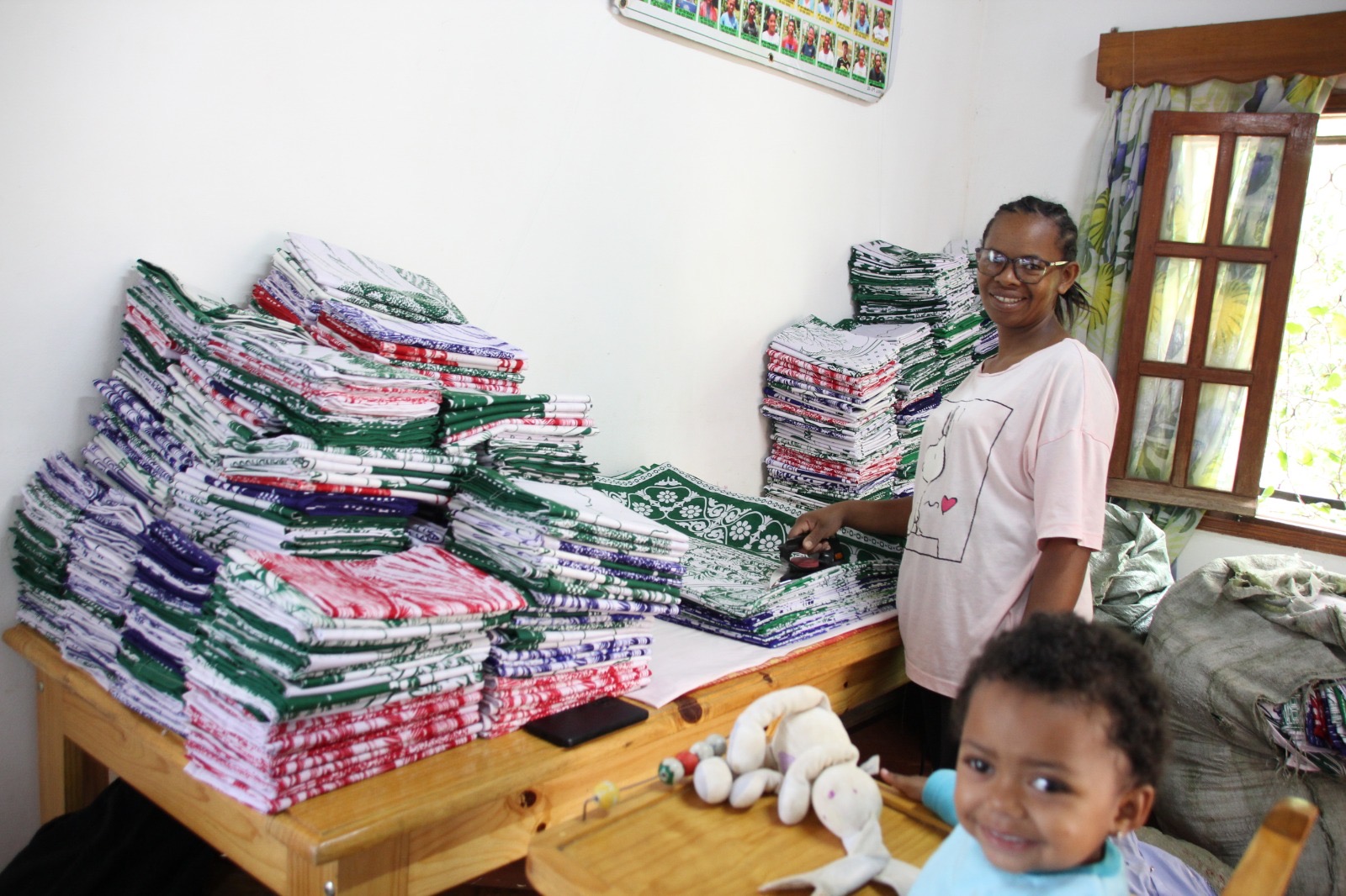 L’atelier couture travaille sur une énorme commande de Kits Dignité de la Croix Rouge: 2800…